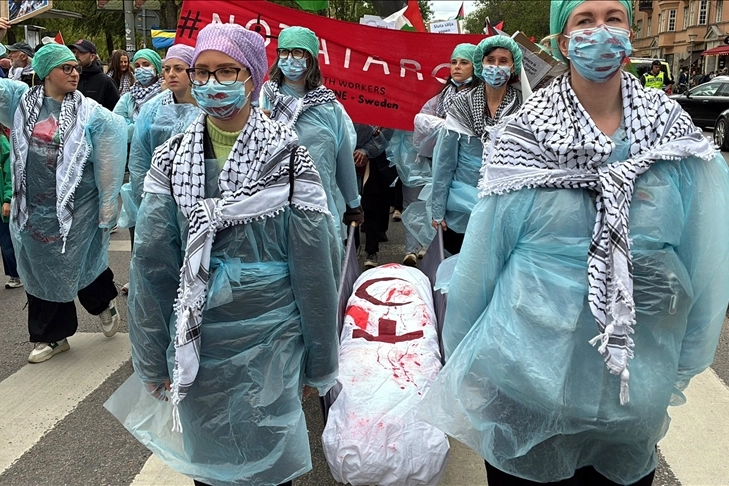 Gösteriye katılan İsveçli aktivist Stefan Olhede, AA muhabirine, İsrail'in Filistin halkına yönelik yaptığı soykırımın durdurulmasını istedi.