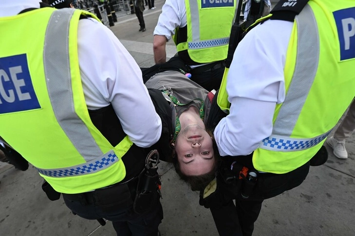 "Soykırıma karşıyım Palestine Action'ı destekliyorum" yazılı pankartlar taşıdığı için "yasaklı örgüte destek" suçlamasıyla gözaltına alınan eylemciler arasında ünlü İngiliz müzik grubu Massive Attack'ın kurucusu Robert Del Naja da yer almıştı.