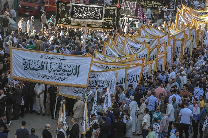 Başkent Kahire’nin tarihi El-Ezher caddesi, Hicri yılbaşı coşkusunu yaşamak isteyen Sufi grupların zikir, ilahi ve bayraklarla katıldığı yürüyüşe ev sahipliği yaptı.
