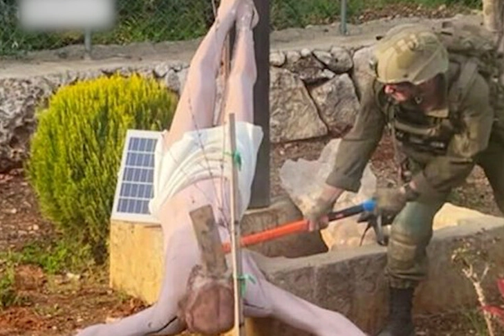 Lübnan'ın güneyinde sınıra 5-6 kilometre uzaklıktaki Deyr Seryan beldesinde, bir İsrail askerinin İsa heykelini baltayla kırdığını gösteren fotoğraf sosyal medyada paylaşılmıştı.