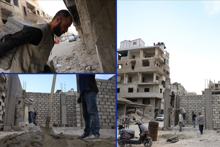 Başkent Şam'da, maddi imkansızlıklar nedeniyle devlet desteği olmadan yaşamlarını sürdüren birçok Suriyeli, yıkılan evlerine geri dönerek kendi imkanlarıyla yeniden inşa çalışmalarına başladı.
