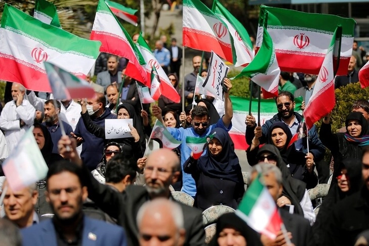 Başkentteki İmam Humeyni Hastanesi yerleşkesinde toplanan göstericiler, "İsrail'e ölüm, ABD'ye ölüm" sloganları attı.