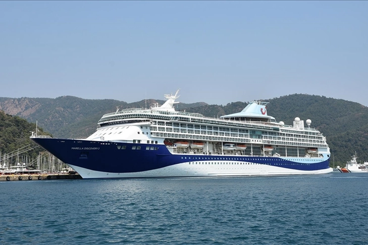 Santorini Adası’ndan gelen 265 metrelik yolcu gemisi, Marmaris Limanı'nın büyük iskelesine yanaştırıldı.