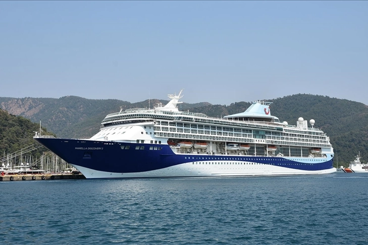 Santorini Adası’ndan gelen 265 metrelik yolcu gemisi, Marmaris Limanı'nın büyük iskelesine yanaştırıldı.