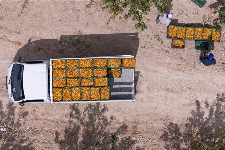 İşçiler, sabah erken saatlerde başladıkları mesailerinde olgunlaşan kayısıları özenle topluyor.