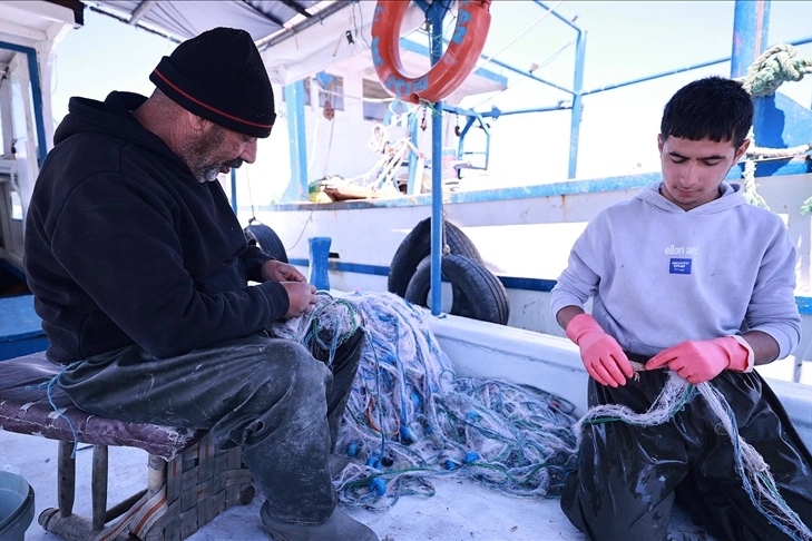 Yasakla beraber Mersin Balıkçı Barınağı'na teknelerini demirleyen balıkçılar, topladıkları ağların tamirini ve motorlarının bakımını yaptı.