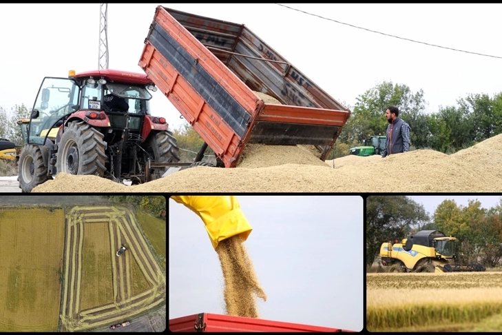 Çeltik olgunlaştıktan sonra biçerdöverle hasat edildi.