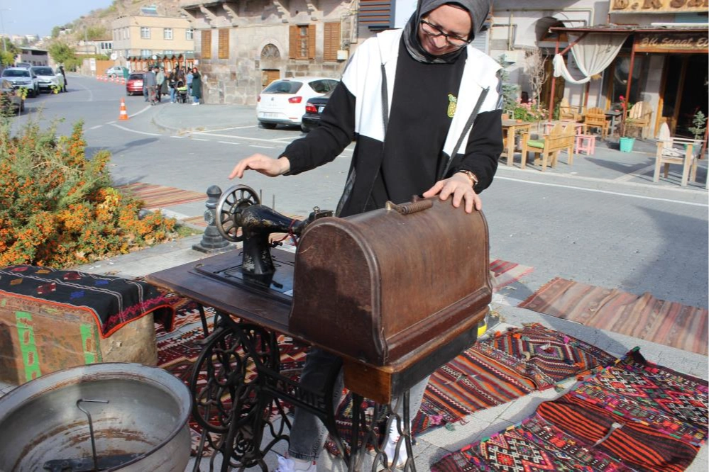 Talas Belediyesi tarafından 'Harman Meydanında Tarihe Yolculuk' sloganıyla düzenlenen Antika Pazarı, birçok türden kıymetli ürünü antika meraklılarıyla bir araya getiriyor. Antika tarım aletlerinden, sanatla ilgili ürünlere, çeşitli koleksiyon parçalarından ev eşyalarına kadar birçok ürünün yer aldığı pazarda birbirinden kıymetli ürünler antika meraklıları ve koleksiyoncularla buluşuyor. Eskiden genç kızların çeyizi için bu dikiş makinasında alındığını söyleyen koleksiyoncu İlker Karşılar, “Kapaklı eski bir dikiş makinası. Kapağı da orijinal. Eskiden evde genç kızı olanlar mutlaka çeyiz için bu dikiş makinasından alırlardı. Bu o dönemden daha eski. Zannediyorum bunda çok elbise tamiri yapıldı. Sadece üzerinde bulunan taş boncuğu bile 80-100 senelik bir boncuk. Bu dikiş makinamızda tahminen 130 yıllık bir ürün. Masasının tahtası halen orijinal duruyor. Babaannelerimizin annesinin çeyizi diyebiliriz. Üzerinde seri numarası da var. Manuel bir ürün. Yan tarafından bir kayışı bulunur ve bu sayede ayakla çevrilerek, dikiş yapılırdı. Önceden herkes terzi ya da hazır olarak alışveriş yapmazdı. Akrabası terzi olurdu. Evinde de böyle bir dikiş makinesi olurdu. Dikiş makinasıyla kendi kıyafetlerini kendileri dikerlerdi. Genç kızlara da bunun dikişinin nasıl yapılacağını herkese öğretmeye çalışırlardı. Bu da eski ve keyifli bir ürün. Bunu da eski olduğundan dolayı kendi koleksiyonumuza kattık. Burada sergiliyoruz. Seven olursa satışını da yaparız. Bu ürünün fiyatı 7 bin 500 TL. Bunlar esnaf fiyatımız. Koleksiyon için ya da müze için alanlar daha yüksek fiyata alıyorlar. Biz burada esnaf fiyatıyla sayıyoruz. Bu söylemiş olduğum fiyat da eskiliğine göre hiçbir şey” şeklinde konuştu.