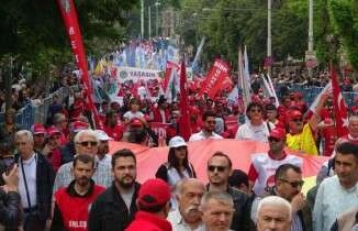Bursa’da bir araya gelen binlerce işçi, 1 Mayıs’ı coşkuyla kutladı.