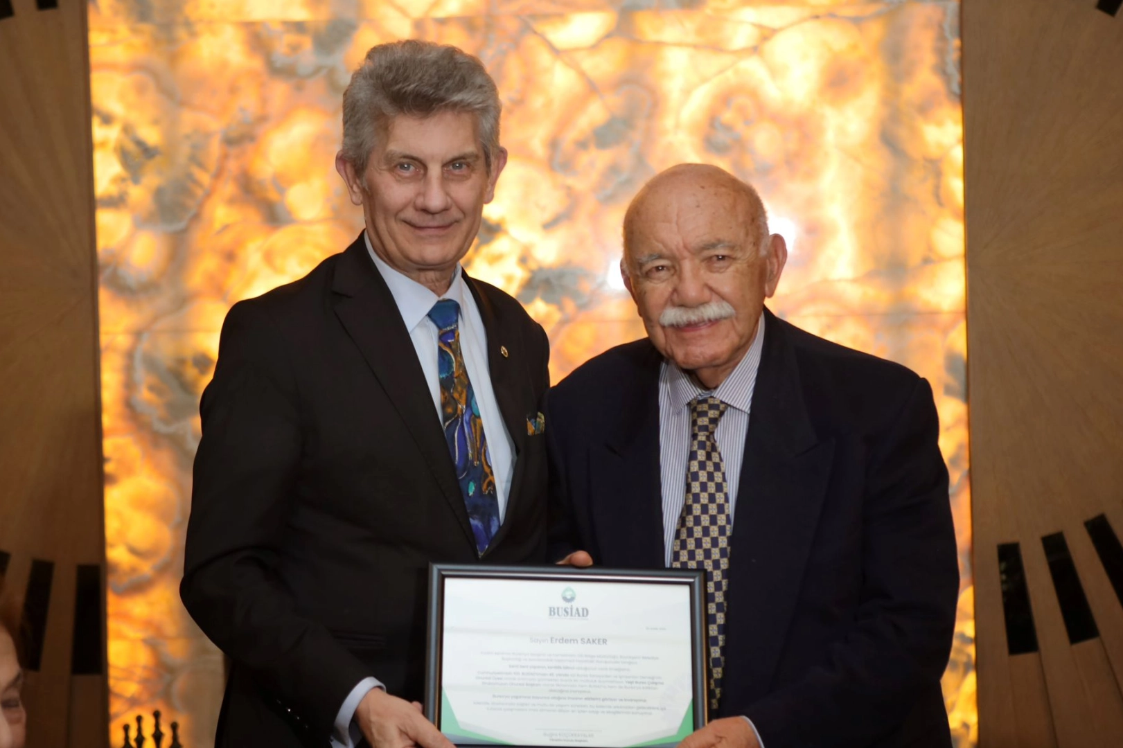 Küçükkayalar, Onur Üyeliği Beratını Erdem Saker’e takdim ederken, Saker de, “BUSİAD’ın Bursa ekonomik yaşamında zirveye koşma yarışında bir motor olduğuna inanıyorum. Bugüne kadar BUSİAD yönetimleri bu motoru doğru kullandılar. Böyle bir ünvana layık olmak da beni çok mutlu etti” diye konuştu.