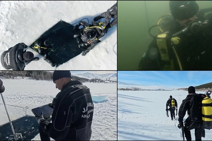 Palandöken ilçesindeki 2 bin 300 rakımlı Tekederesi Göleti'ne gelen ekipler, buz tutan göletin bir kısmını kırarak dalış eğitimini tamamladı.