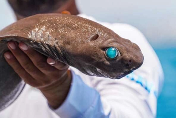 Yeni Zelanda’nın doğu kıyısında 2021 yılında biyolüminesans olarak adlandırılan, kimyasal enerjinin ışık enerjisine dönüştürülmesiyle etrafa ışık yayma yeteneği keşfedilen küt burunlu köpek balığı cinsi, Antalya açıklarında sportif balıkçılık yapan Savaş Dursun’un oltasına takıldı.
