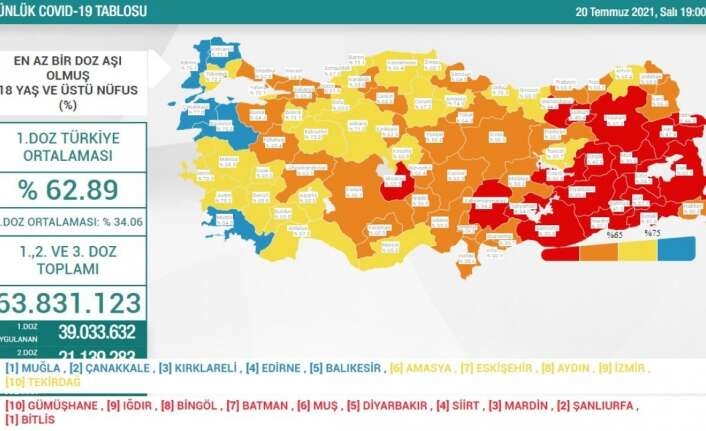 Toplam uygulanan doz miktarı ise 63 milyon 831 bin 123 oldu.