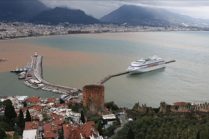 Keykubat ve Soğuk Kapı plajları ile Alanya Balıkçı Barınağı'nda deniz farklı renklere büründü.