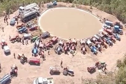 Harmancık'ta onlarca vatandaş traktörlerinin arkalarına bağladıkları su dolu tankerlerle, helikopterler için yangın söndürme havuzuna su taşıdı.