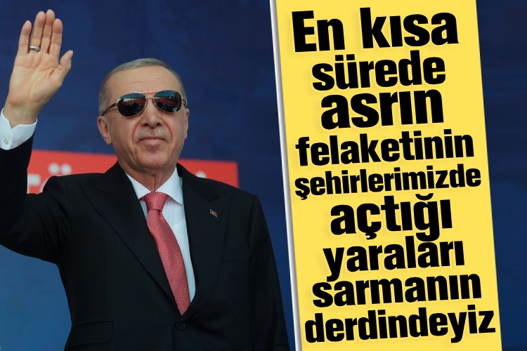 Cumhurbaşkanı Erdoğan, "Dünyada ve bölgemizdeki şartlar ne olursa olsun önceliğimiz bellidir. En kısa sürede asrın felaketinin şehirlerimizde açtığı yaraları sarmanın derdindeyiz." dedi.