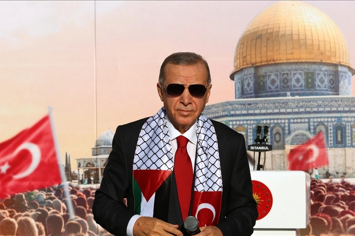 Mitinge katılanlara, Filistin davasına sahip çıkarak Gazzeli mazlumlara umut oldukları için şahsı ve milleti adına teşekkür eden Cumhurbaşkanı Erdoğan, "Bu toprağı bize vatan olarak bırakan ecdadın tüm şehitlerini, gazilerini, kahramanlarını rahmetle anıyorum. Anadolu Selçuklu Devleti'nden Osmanlı'ya ve Cumhuriyet'e kadar vatan topraklarına hükümranlık mührümüzü vurduğumuz devletlerimizin kurulmasında ve yaşatılmasında emeği geçenleri minnetle yad ediyorum." dedi.