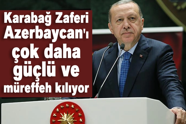 Cumhurbaşkanı Erdoğan, "Karabağ Zaferi, bugün Azerbaycan'ı çok daha güçlü ve müreffeh kılıyor. O gün yakılan istiklal meşalesi çok daha kuvvetli Azerbaycan'ın yolunu aydınlatıyor." dedi.
