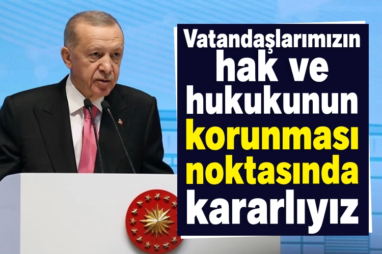 Erdoğan, "Hukuka, nizama, kanunlara uyan vatandaşlarımızın hak ve hukukunun korunması noktasında kararlıyız. Bundan en küçük bir taviz vermeyeceğiz." ifadelerini kullandı.