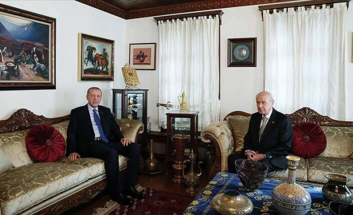 Cumhurbaşkanı Recep Tayyip Erdoğan, MHP Genel Başkanı Devlet Bahçeli ile görüştü. MHP Genel Başkanı Bahçeli'nin Türkmenbeyi Caddesi'ndeki evinde gerçekleşen görüşme saat 16.20'de başladı. Bahçeli, Cumhurbaşkanı Erdoğan'ı evinin girişinde karşıladı. Erdoğan ve Bahçeli, gazetecileri de selamladıktan sonra görüşmeye geçti. Görüşme yaklaşık 1 saat sürerken Bahçeli, Cumhurbaşkanı Erdoğan'ı, makam otomobiline kadar eşlik ederek uğurladı.