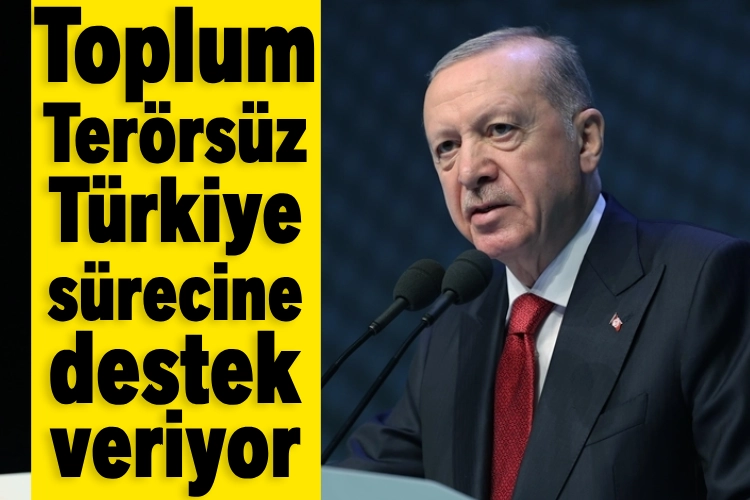 Erdoğan, "Her şeye karşı çıkan mutlu azınlık dışında siyaset kurumu ve toplumun kahir ekseriyeti Terörsüz Türkiye sürecine destek veriyor." şeklinde konuştu.