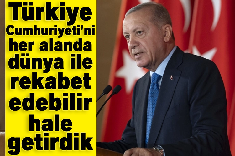 Erdoğan, "Tam da Gazi'nin hayalini kurduğu şekilde, 'en büyük eserim' dediği Türkiye Cumhuriyeti'ni her alanda dünya ile rekabet edebilir hale getirdik." diye konuştu.