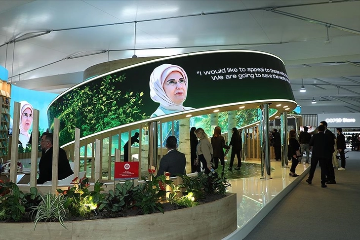 Cumhurbaşkanlığı İletişim Başkanlığının COP29'un Yeşil Bölge'sinde "Sıfır Atık" ana temasıyla kurulan Türkiye pavilyonunda ziyaretçilere, Cumhurbaşkanı Recep Tayyip Erdoğan'ın eşi, BM Sıfır Atık Danışma Kurulu Başkanı Emine Erdoğan'ın girişimleriyle başlatılan Sıfır Atık Projesi anlatılıyor.