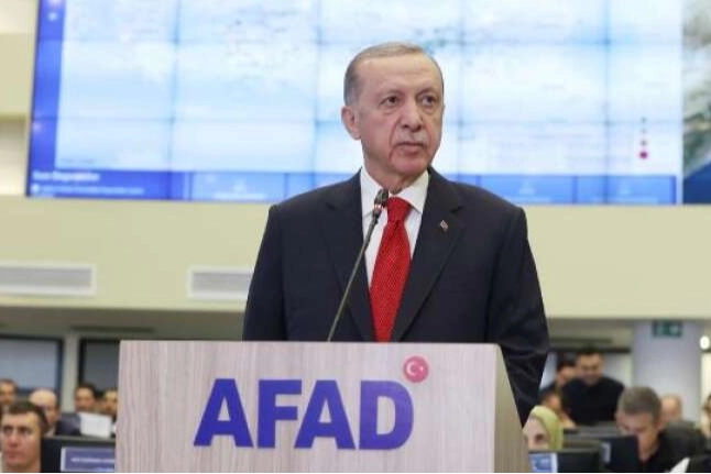 Erdoğan, Kahramanmaraş merkezli depremlerin ardından koordinasyon merkezi olarak kullanılan Afet ve Acil Durum Yönetimi (AFAD) Başkanlığı Merkez Binası'nda düzenlenen Kabine Toplantısı'nın ardından millete seslendi.