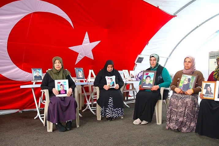 Ellerinde çocuklarının fotoğrafıyla eski HDP il binası önünde bekleyişini sürdüren annelerden Sariye Tokay, 14 yıl önce oğlunun HDP'liler tarafından dağa kaçırıldığını söyledi.