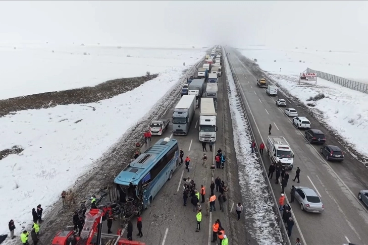 İran'a ait yolcu otobüsü ve iki tırın karıştığı kazada, ilk belirlemelere göre 1 kişi öldü, 4 kişi yaralandı. İhbar üzerine kaza yerine çok sayıda AFAD, sağlık, itfaiye ve jandarma ekibi sevk edildi.