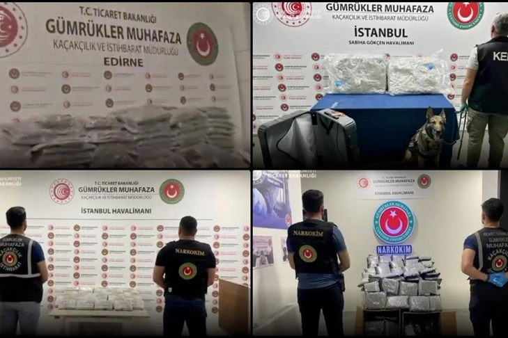 Gümrükler Muhafaza ekiplerince Edirne, Iğdır ve İstanbul'da temmuzun ilk 9 gününde 9 ayrı operasyon gerçekleştirildiğine işaret edilen açıklamada, "Operasyonlarda 665 kilogram esrar, 344 kilogram metamfetamin, 80 kilogram khat ve 63 kilogram kokain cinsi uyuşturucu madde ele geçirildi." ifadesi kullanıldı.