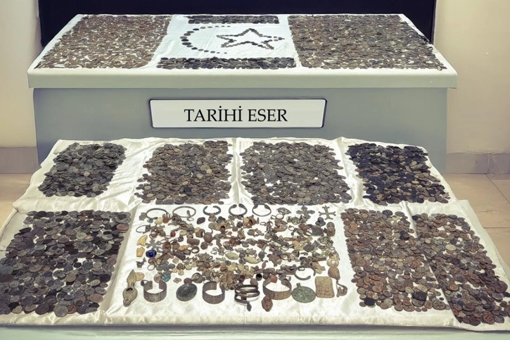 Tırın kupasında yapılan aramada, tarihi eser niteliğinde olduğu değerlendirilen 12 bin 370 sikke ile 400 takı ve obje ele geçirildi.