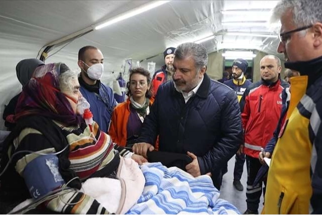 Sağlık Bakanı Koca Hatay merkezli depremden etkilenenleri sahra hastanesinde ziyaret etti