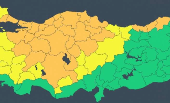 Meteoroloji Genel Müdürlüğü, hasar ve kayıp oluşturma riski bulunan meteorolojik hadiseler nedeniyle 31 il için turuncu, 18 il için ise sarı kodlu uyarıda bulundu.