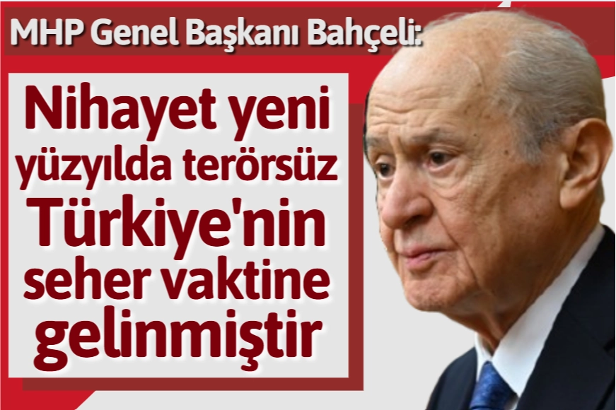 Türkiye Cumhuriyeti'nin PKK ile mücadelesinin meşru, hukuki ve haklı bir mücadele olduğunu belirten Bahçeli, "Nihayet yeni yüzyılda terörsüz Türkiye'nin seher vaktine gelinmiş ve bu suretle milli huzur ve sükunetin gün doğumuna ramak kalmıştır." ifadesini kullandı.