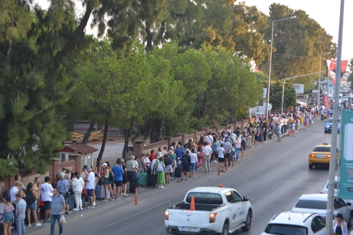 Tatilciler, adaya gidebilmek için sabahın ilk saatlerinden itibaren Ayvalık Deniz Hudut Kapısı önünde zaman zaman yüzlerce metrelik kuyruklar oluşturdu.