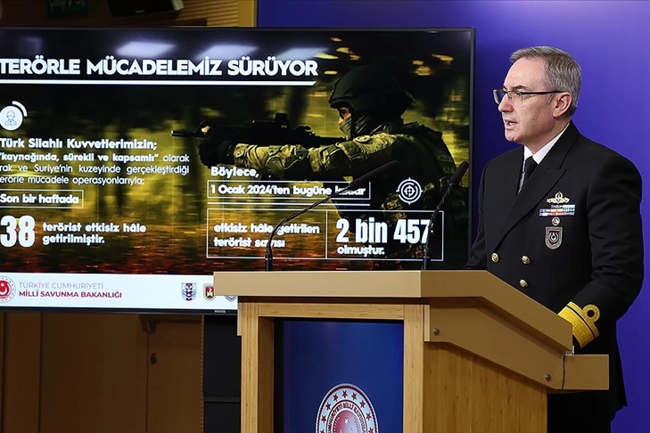 Milli Savunma Bakanlığı (MSB) Basın ve Halkla İlişkiler Müşaviri Tuğamiral Zeki Aktürk, Irak ve Suriye'nin kuzeyinde son bir haftada 38 teröristin etkisiz hale getirildiğini bildirdi.