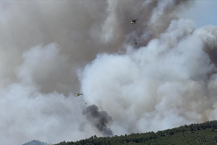 Kara ekiplerinin gece boyu yangını söndürmek için mücadele verdiği bölgede, dün akşam saatlerinde ara verilen hava destekli söndürme çalışmaları günün ilk ışıklarıyla yeniden başladı.
