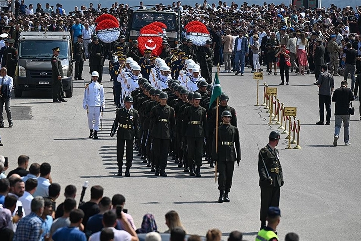 Şehidin eşi, "Kurban olurum sana, sen çok güçlüydün aşkım." diyerek ağladı. Şehidin annesi de tabuta sarılarak "Cennet bahçelerinde yaşa annem." dedi.