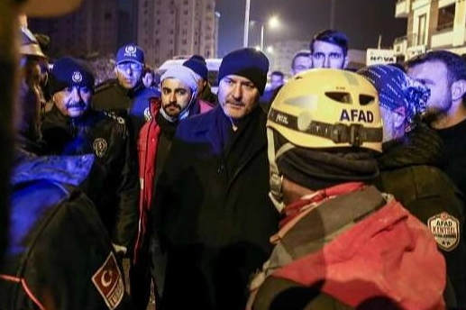 Soylu, Ekinci Mahallesi Buket Apartmanı önüne gelerek arama kurtarma çalışması gerçekleştiren ekipleri ziyaret etti.