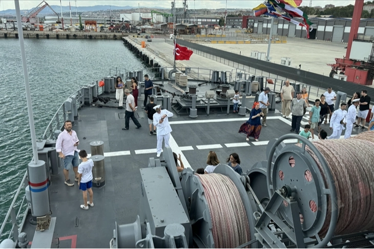 Vatandaşlardan Erdal Torlak, AA muhabirine, 30 Ağustos Zafer Bayramı dolayısıyla kente gelen gemiyi ailece gezdiklerini söyledi.