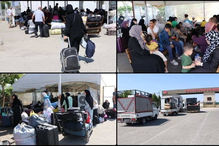 Kilis'teki Öncüpınar Gümrük Kapısı'na gelen Suriyeliler, Gönüllü Geri Gönderme Birimindeki işlemlerinin ardından ülkelerine gidiyor.