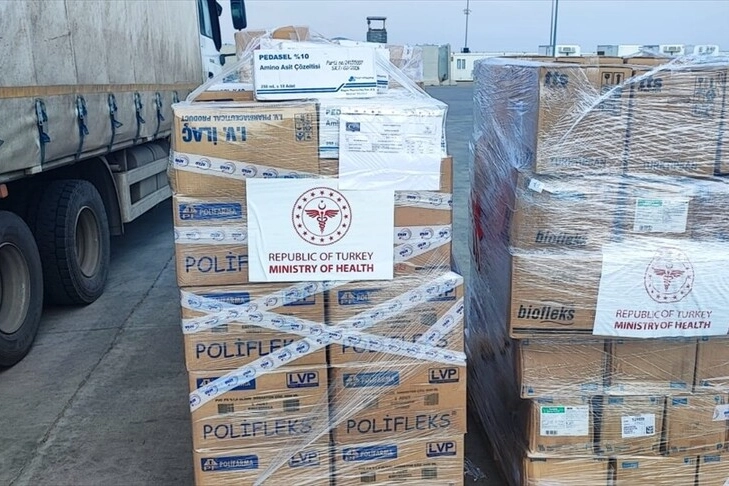 Sağlık Bakanlığı tarafından yürütülen çalışmalar kapsamında, 3 tır (60 palet) tıbbi yardım malzemesi Ağrı Doğubayazıt Gürbulak Sınır Kapısına doğru yola çıkarıldı. Bu kapsamda 70 kalem ilaç, 33 kalem tıbbi sarf malzemesi ve 240 kalem tıbbi cihaz temin edildi.