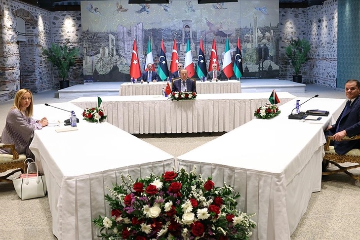 Cumhurbaşkanı Erdoğan, İtalya Başbakanı Meloni ve Libya Ulusal Birlik Hükümeti Başbakanı Dibeybe'yi Cumhurbaşkanlığı Dolmabahçe Çalışma Ofisi'nde ayrı ayrı resmi törenle karşıladı.