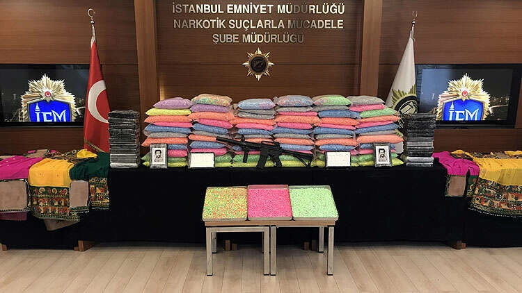 Giysilere emdirilmiş afyon sakızı ele geçirildi Ayrıca ekipler, 26 Mayıs'ta Bakırköy'de bir kargo şirketine düzenledikleri operasyonda da İran'ın yöresel kıyafetlerine emdirilmiş 12 kilogram afyon sakızı ele geçirdi. Operasyonda İran uyruklu 3 şüpheli gözaltına alındı. Emniyetteki işlemlerinin ardından adliyeye sevk edilen D.S (40) ve A.G (33) ile İran uyruklular R.H.E (21), S.B (33) ve B.T (37) tutuklandı. (AA)