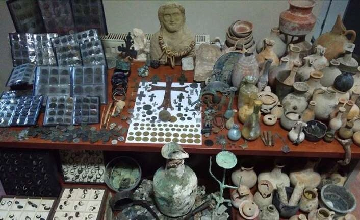 Kütahya'da düzenlenen operasyonda çeşitli dönemlere ait 5 bin 365 parça tarihi eser ele geçirildi, 2 kişi gözaltına alındı. İl Emniyet Müdürlüğü Kaçakçılık ve Organize Suçlarla Mücadele Şubesi ekipleri, şüpheli O.K. ve M.Ö'nün il genelinde yapılan kaçak kazılarda çıkarılan tarihi eser niteliğindeki objeleri satın aldığı bilgisine ulaştı. Yaklaşık 1 ay süren takibin ardından şüphelilerin tarihi eserleri Fuat Paşa Mahallesi'nde kiraladıkları evde sakladığı tespit edildi. Polis ekipleri, eve düzenlediği operasyonda 4 bin 219 sikke, 580 süs eşyası, 10 oku ucu, 26 insan ve hayvan figürü, 176 yüzük, 24 bilezik, 57 kolye, 17 haç, 36 savaş ve tarım aleti, 60 ayna, 24 mühür, 7 gözyaşı şişesi, 3 taş obje, 110 toprak testi, 1 heykel ve 15 tanımlanmayan obje ele geçirdi. Gözaltına alınan şüphelilerin, emniyetteki işlemlerinin devam ettiği öğrenildi. Kütahya Müze Müdürlüğü yetkililerince yapılacak incelemelerin ardından tarihi eserlerin kesin dönemlerinin belirleneceği bildirildi.
