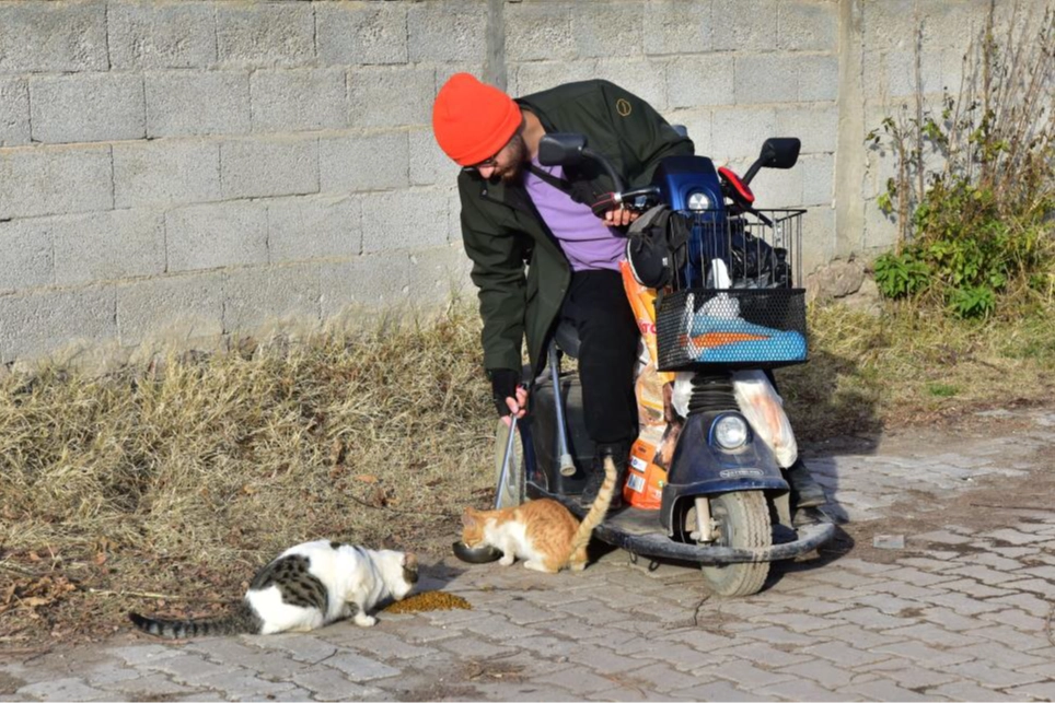 Doğuştan serebral palsi (beyin felci) hastası olan yürüme engelli Uğur Avcı, sosyal medyada "birpatiahlat" adında bir hesap açarak hayvanseverlerin yaptığı bağışlar ve kahve satarak kedi ve köpek maması alıyor. Avcı, her gün düzenli olarak kedi ve köpek mamalarını doldurduğu çantaları akülü aracına yükleyerek sokak hayvanlarını beslemek için yola koyuluyor. Akülü aracıyla ilçedeki sokakları gezen bedensel engelli Uğur Avcı, hayvanlarının yaşam alanlarına mama ve su bırakıyor. Sokaklardaki yaralı ve yardıma muhtaç hayvanları da veterinere götürüp tedavilerini yaptıran Avcı, bazı sokak hayvanlarının insanlar tarafından sahiplenmesini sağlayarak sıcak yuvalara kavuşmasına öncülük ediyor. “10 yıldır sokak hayvanlarının ihtiyaçlarına koşturuyorum” Gösterdiği fedakârlıkla ilçe halkının da takdirini kazanan Avcı, engelli olmasına rağmen sokak hayvanlarını beslemenin mutluluğunu yaşadığını belirterek, “24 yaşındayım doğuştan serebral palsi hastasıyım. Kendimi bildim bile bileli çocukluğumdan beri hayvanlarla uğraşıyorum, alakadar oluyorum. Bu tedavi sürecine de manevi ve psikolojik olarak aşırı katkısı olan bir durum. 10 yıldır sokak hayvanlarının ihtiyaçlarına koşturuyorum. Mama, beslenme, veteriner masrafları, sahiplendirme ve yuvalandırma gibi işlere koşturuyorum. Bunun yanında sokak hayvanlarına bağış toplama amaçlı kahve ve farklı yan ürün satışlarımız oluyor. Daha önceleri gönüllü olarak bu işe başladım. Önce kendi kapımın önünde, sonra mahalle ve sonrasında bütün ilçeye taştı. 2019 yılından itibaren de sosyal medya üzerinden ‘birpatiahlat’ adında sayfalar açarak sokak hayvanlarını beslemek ve ihtiyaçlarını gidermek için bağışlar toplamaya başladık. Bu sayfalar üzerinden bize ulaşıp bağış yapılabilir. Az miktarlarda da bağış yapılsa hayvanlar için güzel şekilde geri dönüş oluyor. Karınları doyuyor” dedi. “Kışın sokak hayvanlarının daha çok beslenmeye ve korunmaya ihtiyacı var” Kış ayına girdiklerini ve yakın zamanda şiddetli kar yağışlarının ve soğukların başlayacağını belirten Avcı, bu süreçte sokak hayvanlarının daha çok beslenmeye ve korunmaya ihtiyaçları olduğunu söyledi. Avcı, “Özellikle kış mevsimi hayvanlar için çok çok daha zor oluyor. Bu konuda insanlar biraz daha duyarlı olursa sevinirim. Kapınızın önüne bir kap su, bir kap mama koymak çok zor olmasa gerek. Çünkü neticede hepsi bir can. Dolayısıyla her can kıymetli bizim için. Nasıl olsa hayvan deyip geçmemek lazım. Anlamı büyük, zaten onların sunduğu vefada çok büyük. Bazen mamadan çok sevdirmek içinde geliyorlar. Umarım bu konuda daha duyarlı olabiliriz. İmkânı olanlardan az çok demeden destek ve bağışlarını bekliyoruz” diye konuştu.