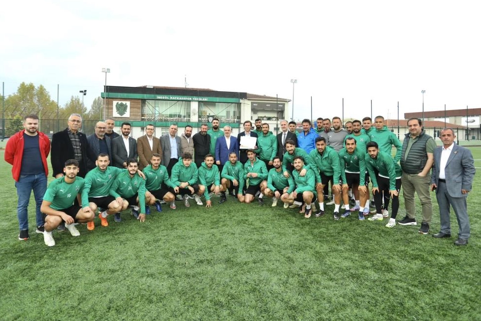 İnegöl’ü TFF 3. Lig 1. Grupta temsil eden Kafkasspor, profesyonel liglerdeki ilk sezonunda 8 haftada topladığı 10 puanla 8. sırada yer alıyor. Ligde oynanan 8 karşılaşmada 3 galibiyet, 1 beraberlik ve 3 mağlubiyeti bulunan ve bir haftayı da bay geçen Yeşil Siyahlılar, 9. hafta müsabakaları çerçevesinde 5 Kasım Pazar günü 14.00’da İnegöl İlçe Stadında Talasgücü Belediyespor’u konuk edecek. Zorlu karşılaşmanın hazırlıkları sürüyor Aralarında 1 puan bulunan rakibini mağlup ederek üst sıralara tırmanmak isteyen Kafkasspor, zorlu karşılaşmanın hazırlıklarını Teknik Direktör Yavuz İncedal nezaretinde sürdürüyor. Kritik öneme sahip müsabaka öncesi İnegöl protokolü, yeşil siyahlı kulübün antrenmanını ziyaret ederek destek verdi.