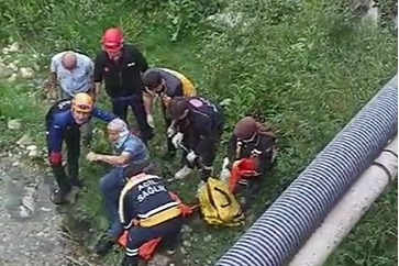 Düşme sonucu vücudundan kırıklar olan yaşlı adam yapılan ilk müdahalesinin ardından sedyeye konuldu. AFAD ve itfaiye ekipleri tarafından dereden çıkarılan yaşlı adam ambulansla Karabük Eğitim ve Araştırma Hastanesine kaldırıldı.
