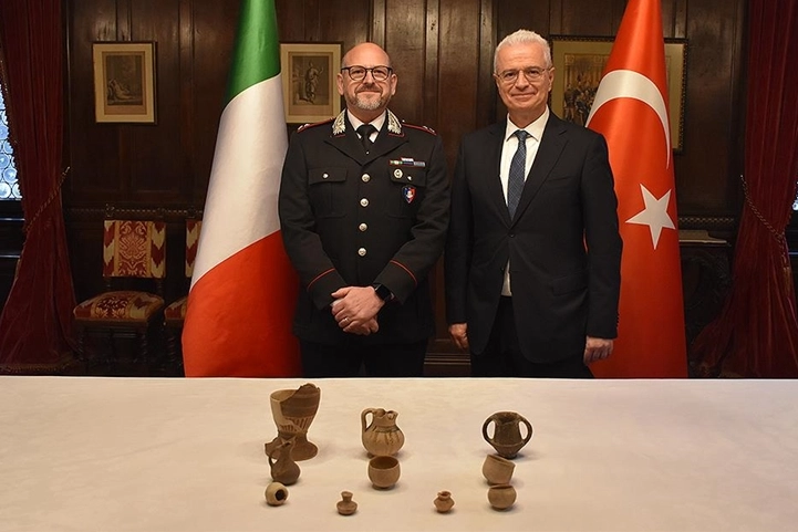 Törende Floransa Jandarma Komutanlığı (Carabinieri) Kültür Varlıklarını Koruma ve Tarihi Eser Kaçakçılığıyla Mücadele Şube Müdürü Binbaşı Claudio Mauti ve heyeti, milattan önce (MÖ) 3000'lerden Demir Çağı'na kadar olan dönemde Anadolu'da yapılan ve bir şekilde İtalya'da bulunan 10 pişmiş toprak eseri, Türkiye'nin Roma Büyükelçisi Ömer Gücük'e teslim etti.